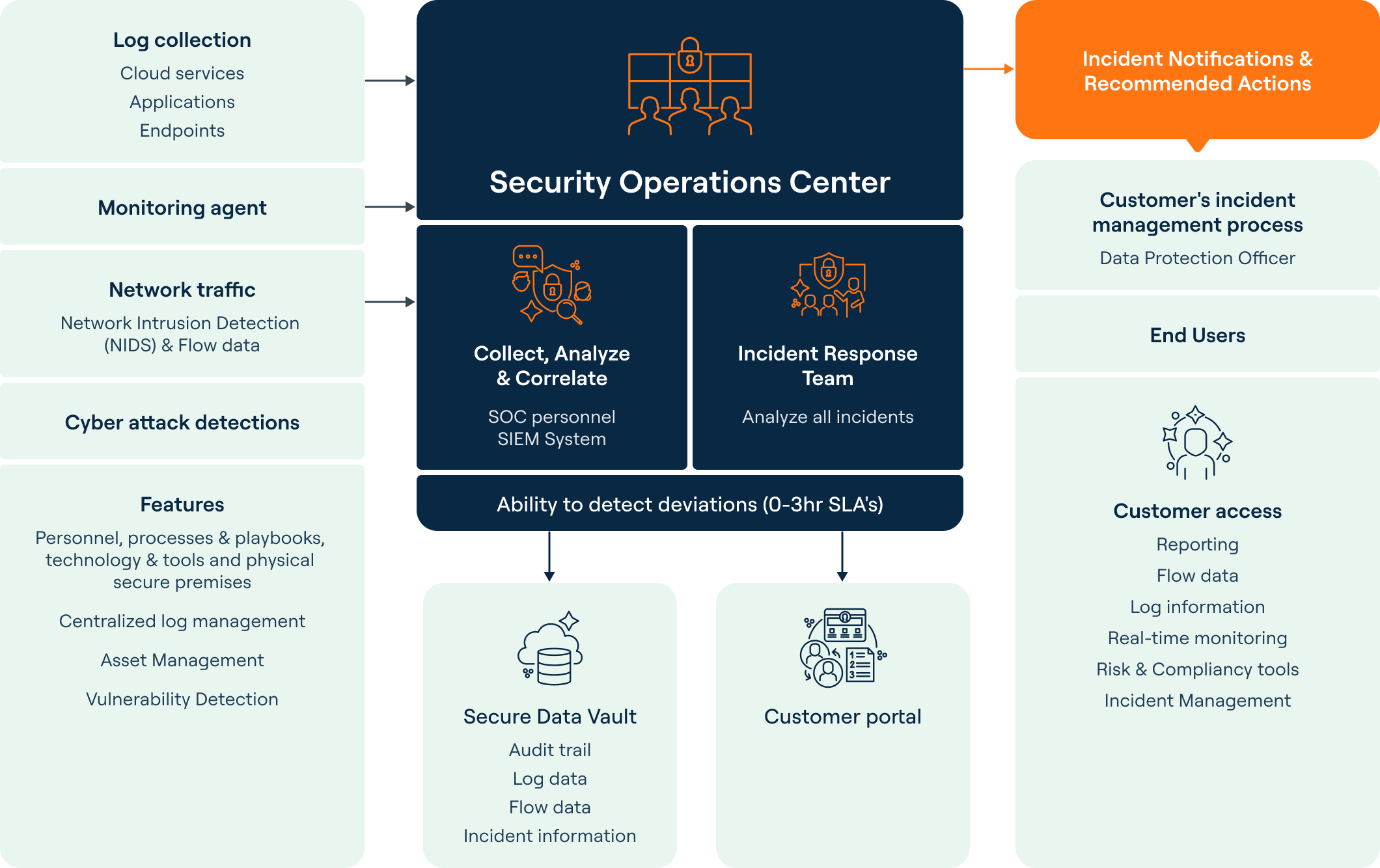 Din daglige drift vil være fullstendig overvåket og sikret av vår SOC innen to måneder fra oppstart.